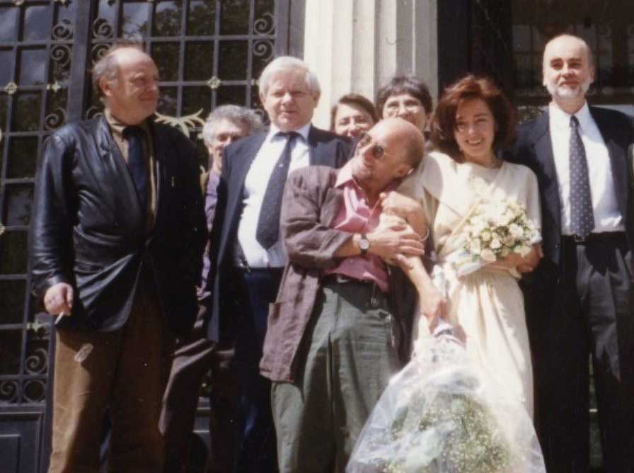 Φωτογραφία από τον γάμο του Άνταμ Ζαγκαγιέφσκι. Τη γυναίκα του Μάγια κρατάει από αριστερά ο ηθοποιός Βόιτσεκ Πόσνιαχ, ακολουθούν ο Ζμπίγκνιεφ Χέρμπερτ και ο Γιόζεφ Μπρόντσκι.