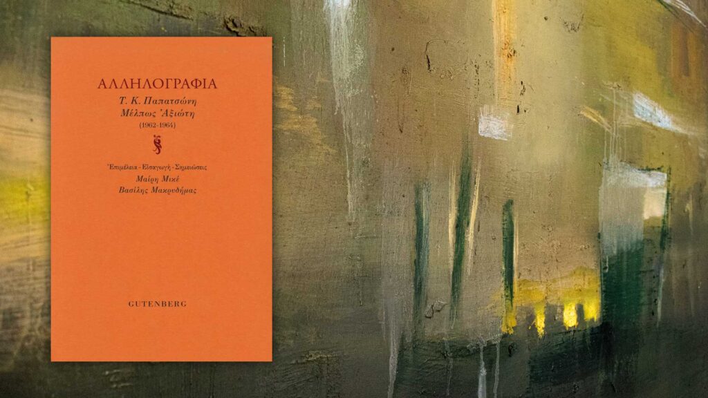 Αλληλογραφία Τ.Κ. Παπατσώνη-Μέλπως Αξιώτη (1962-1964), επιμέλεια-εισαγωγή-σημειώσεις: Μαίρη Μικέ – Βασίλης Μακρυδήμας, Gutenberg, Αθήνα 2025. θέλω να βρω ένα πουλίν, πονετικόν πουλάκιν«Περί ξενιτείας» Είναι γνωστό ότι στην επιστολογραφία, λόγο που συχνά διατρέχει τα σύνορα ανάμεσα στο
