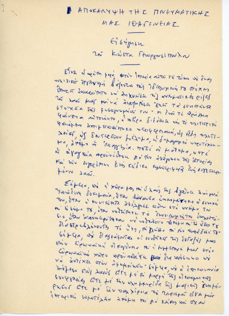 Ο Κώστας Γεωργουσόπουλος, μια αναγεννησιακή προσωπικότητα που άφησε έντονο το στίγμα του στα γράμματα και τη νεοελληνική θεατρολογία το τελευταίο μισό του εικοστού αιώνα και το πρώτο τέταρτο του εικοστού πρώτου, υπήρξε ένας υπέρμαχος της