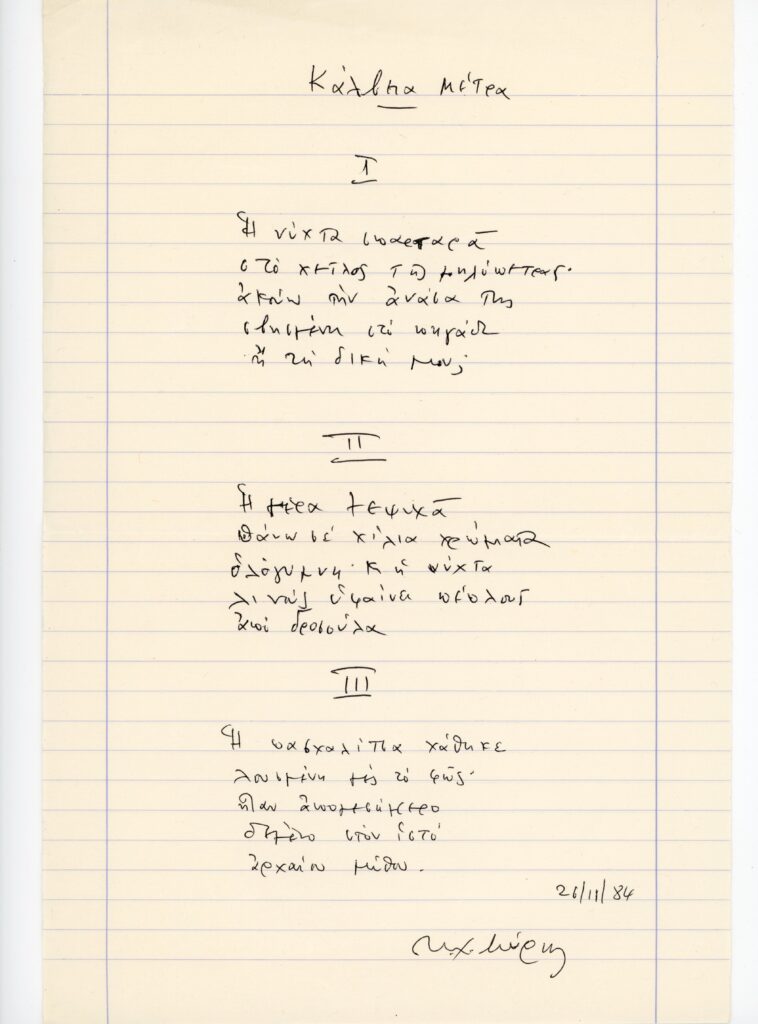 Κώστα μου, Τι μπορώ να γράψω για σένα; Τι να θυμηθώ; Διαλέγω τα πιο μικρά Τα πιο ασήμαντα Τα πιο πολύτιμα Αυτά που χάριζες απλόχερα στην ανεκτίμητη καθημερινότητά μας Τις συζητήσεις μας για τα σπουδαία