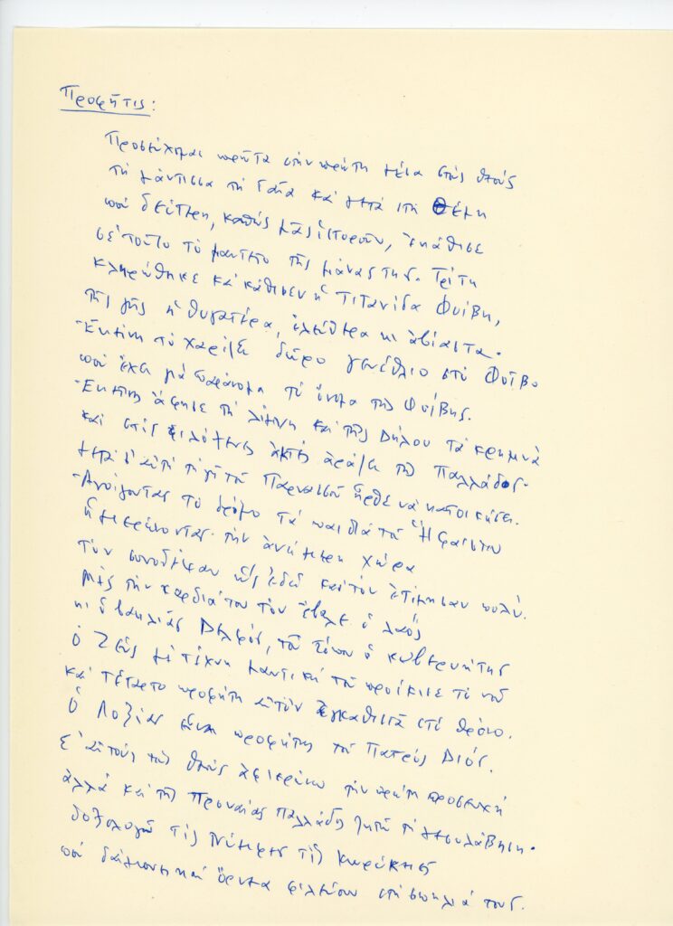 Στον κόσμο τίποτα δεν γίνεταιπου να μην είναι ΖευςΣοφοκλή, Τραχίνιες, Μετάφραση Κ.Χ. Μύρης Κατέβηκα από το τρένο. Πέρασα πάνω από την αερογέφυρα. Προχώρησα προς το άλσος. Η νύχτα είχε πέσει για τα καλά ως τότε.