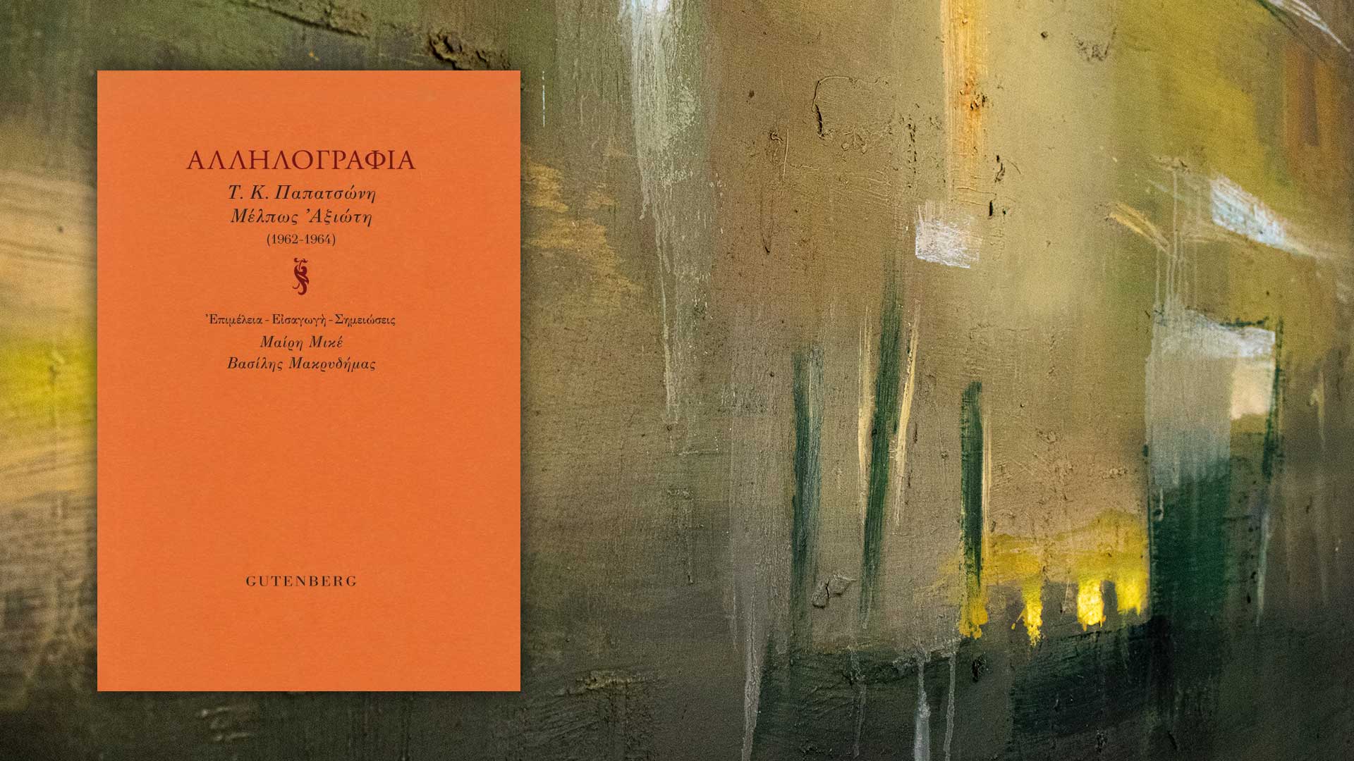 [3] Αλληλογραφία Τ.Κ. Παπατσώνη – Μέλπως Αξιώτη (1962-1964), Επιμέλεια – Εισαγωγή – Σημειώσεις: Μαίρη Μικέ, Βασίλης Μακρυδήμας, Gutenberg, Αθήνα 2025, σ. 86.